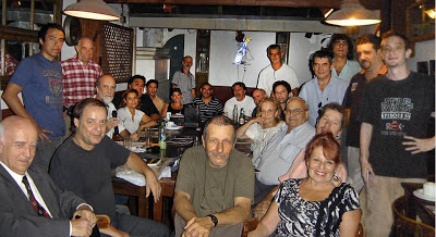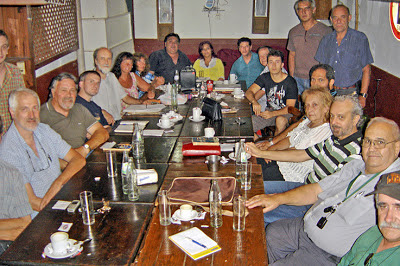 FOTO: De izq a der. en primer plano: Roberto Martínez, Javier Stagnaro, Alberto Portalet y Susana Slipak, Rodeando la mesa: Julio Gastón González, Mario Lupo, Rubén Morales, Nancy Benítez, Pablo Warmkraut, Adrián Kaplan Krep, Patricia Taylor, Ricardo Jovic (de pie), Daniel Postizzi, Alex Gómez, Luis Alberto Baynham, Edgardo Stekar (de pie), Fernando Dematteo, Ana Serrano, Mario Coen, Horacio Emilio Pistoni, Rubén Romano, Horacio Sorbaro, Ricardo Bruzzone e Iván Orenstein.
